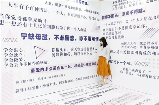 網(wǎng)紅打卡地“良渚博物院”,沒想到自己被包圍成“展品”被打卡。此外,對于很多展覽、體驗館來說,“拍照好看”成為了第一要素。自從TeamLab打造出一時炙手可熱的現(xiàn)象級展覽并且成為Ins火爆的話題之后,國內出現(xiàn)多種創(chuàng)意展覽,以“多媒體”“沉浸式”展覽方式、藝術性特征符號為點綴,成為新一代年輕人對“時尚”“藝術”的追求。最主要的還是“拍照好看”,對于網(wǎng)紅景點來說,評價一個景區(qū)、打卡地優(yōu)秀的標準不再是 5A,而是“好出片”。在小紅書上,“0元拍大片”是博主們最愛用的推薦詞匯。還有一些“主題性”展覽館,應對某一痛點需求,同樣成為年輕人打卡之地。如北京的“奇葩減壓館”、“失戀博物館”“泡面館”等就以圍繞主題新奇的體驗,成為年輕人的打卡圣地。
